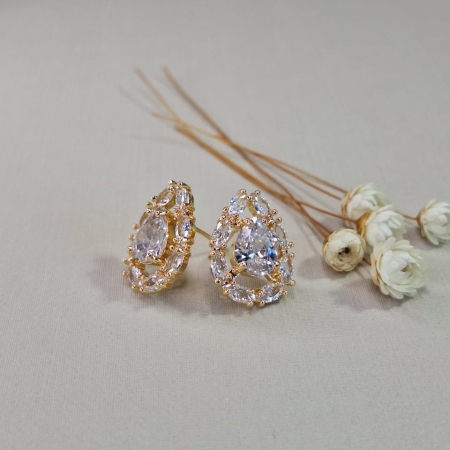 • Brinco zircônia gota envolta por zircônias no formato navete