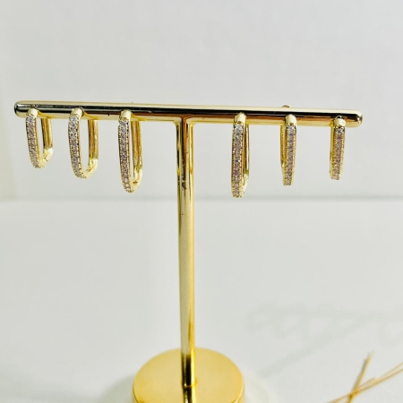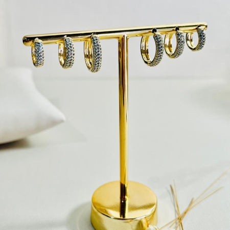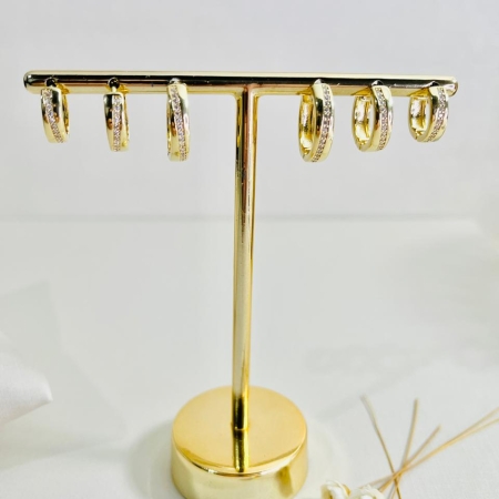 • Trio de argolinhas clic cravejado banhado a ouro 18k