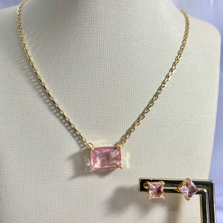 • Colar + Brinco Pedra Fusion rosa