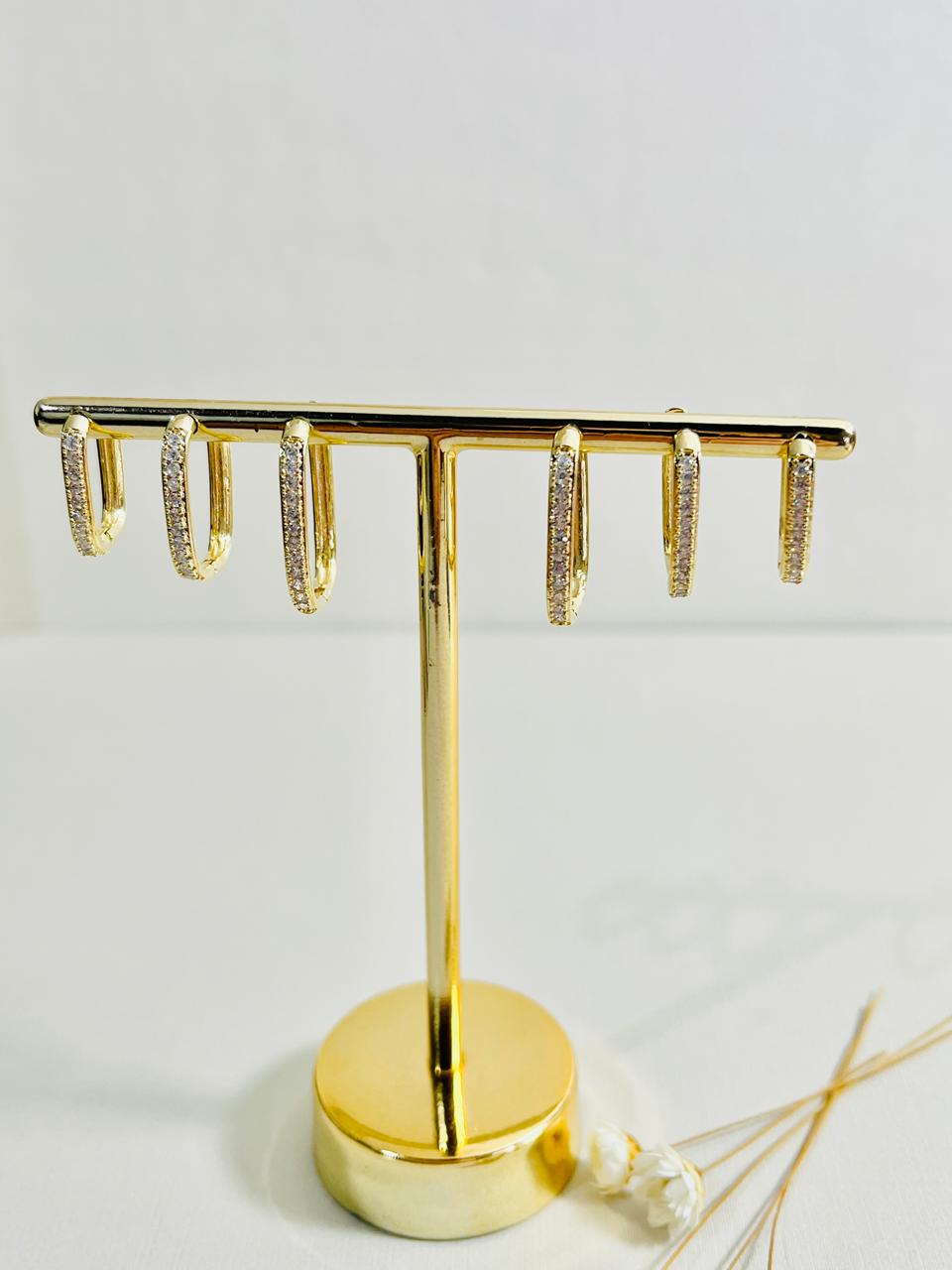 Sofisticação em cada detalhe! O trio de argolinhas clic retangulares cravejadas com uma fileira de zircônias na cor cristal é a escolha perfeita para quem busca elegância com um toque moderno. O formato geométrico traz um ar contemporâneo, enquanto o brilho delicado das zircônias ilumina o visual com sutileza. Ideal para compor os 1º, 2º e 3º furos com harmonia e estilo — um trio versátil, refinado e simplesmente irresistível!